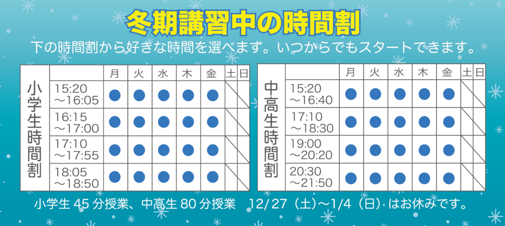 • 時間割もオリジナル。冬休み中の都合に合わせて柔軟に組めます